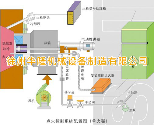 本系統由就地點(diǎn)火控制柜(SKDK)、高能點(diǎn)火裝置、火焰檢測裝置、油燃燒器推進(jìn)執行器和球閥組成。點(diǎn)火柜按用戶(hù)要求可以采用繼電器或可編程控制器PLC為核心。系統可自動(dòng)(接受集控室指令)或手動(dòng)(現場(chǎng)就地)控制。點(diǎn)火設備按有關(guān)規范及設定程序進(jìn)行鍋爐的點(diǎn)火操作,并給出各種工況的就在顯示和對集控室的信號反饋。